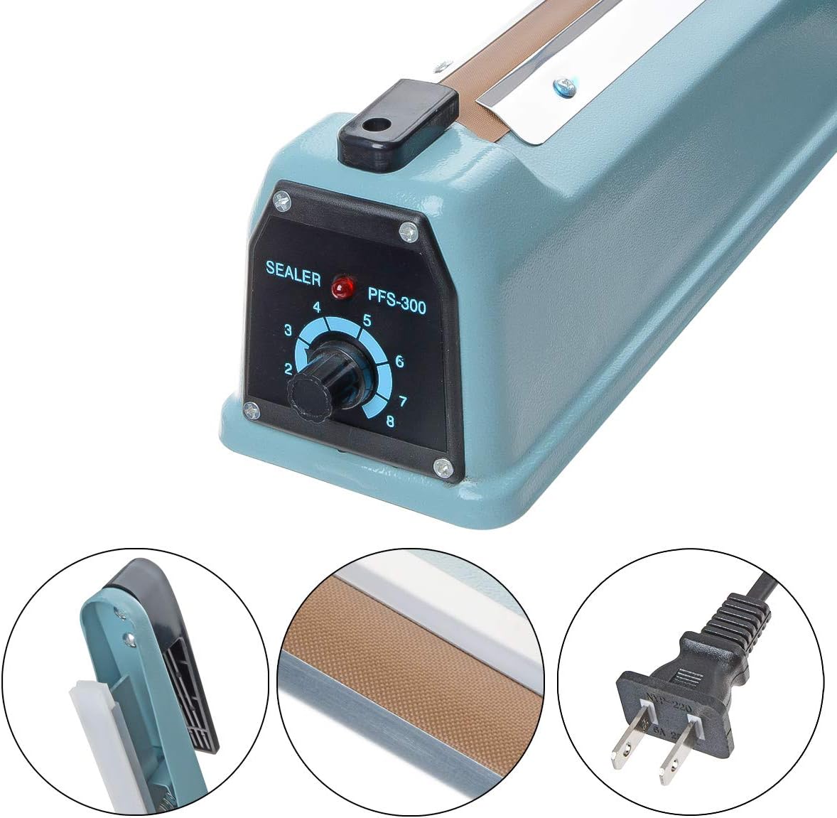 Manual Impulse Sealer Specifications: Size:12 inch(PFS-300),2mm sealing width, CE certification passed. Upgrade thicken iron case. Comes with 1 replacement kits.